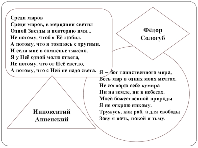 А. Блока, А. Белого, Вяч. Иванова, И. Анненского,