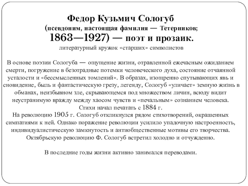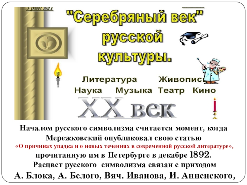Слайд 8Началом русского символизма считается момент, когда Мережковский опубликовал свою статью