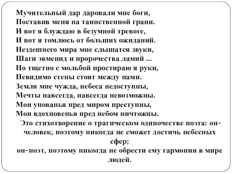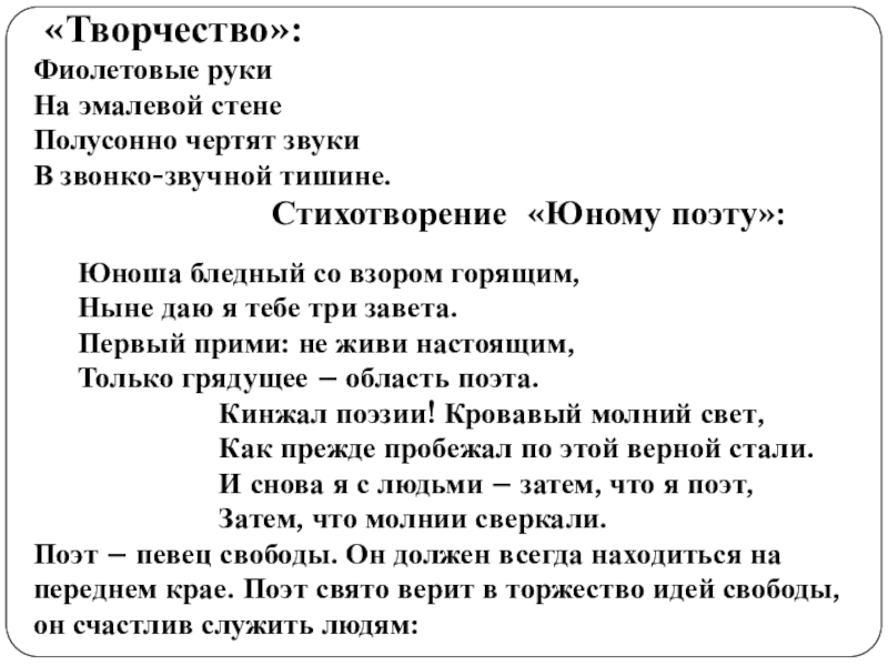поэт — прежде всего творец сугубо личных и чисто художественных ценностей.