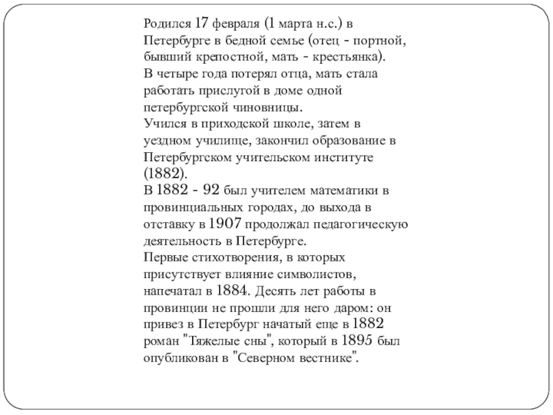 Слайд 101867г. – Родился в деревне Гумнище, Владимирской губернии, в дворянской семье.
