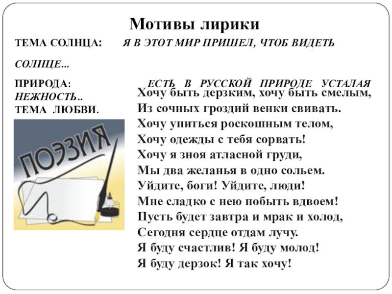 российская поэзия Фета, Тютчева, проза Достоевского;