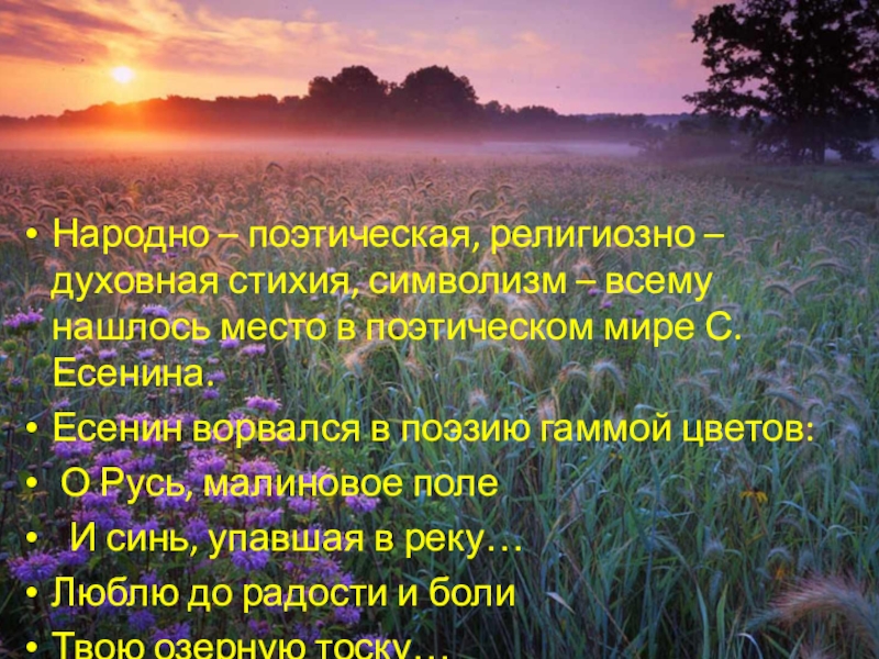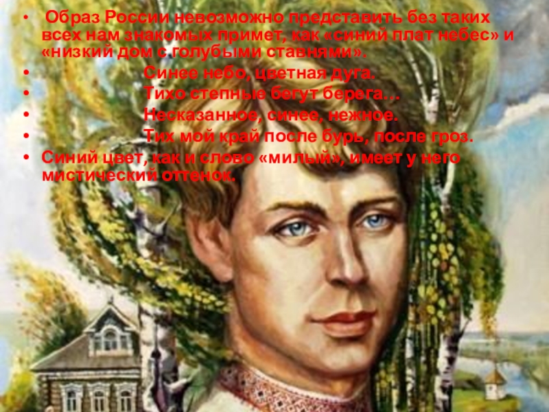 Слайд 25 Красный цвет у Есенина означает напряжение сил, концентрацию энергии —