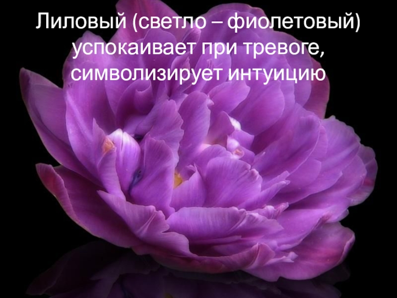 Слайд 38Лиловый (светло – фиолетовый) успокаивает при тревоге, символизирует интуицию