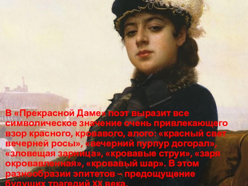 Слайд 16В «Прекрасной Даме» поэт выразит все символическое значение очень привлекающего взор
