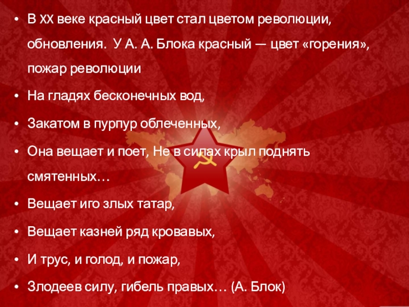 Слайд 18В XX веке красный цвет стал цветом революции, обновления. У А.
