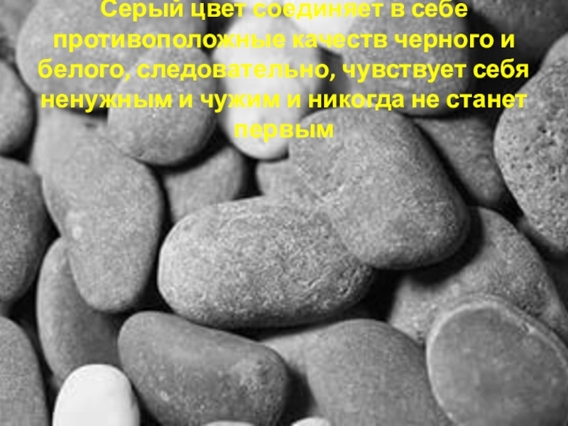 Слайд 36Серый цвет соединяет в себе противоположные качеств черного и белого, следовательно,
