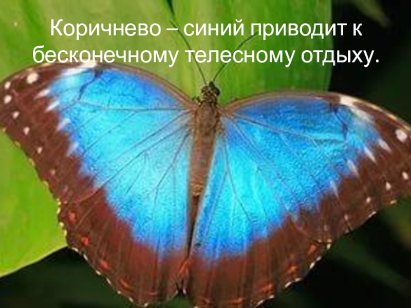 Слайд 44Коричнево – синий приводит к бесконечному телесному отдыху.