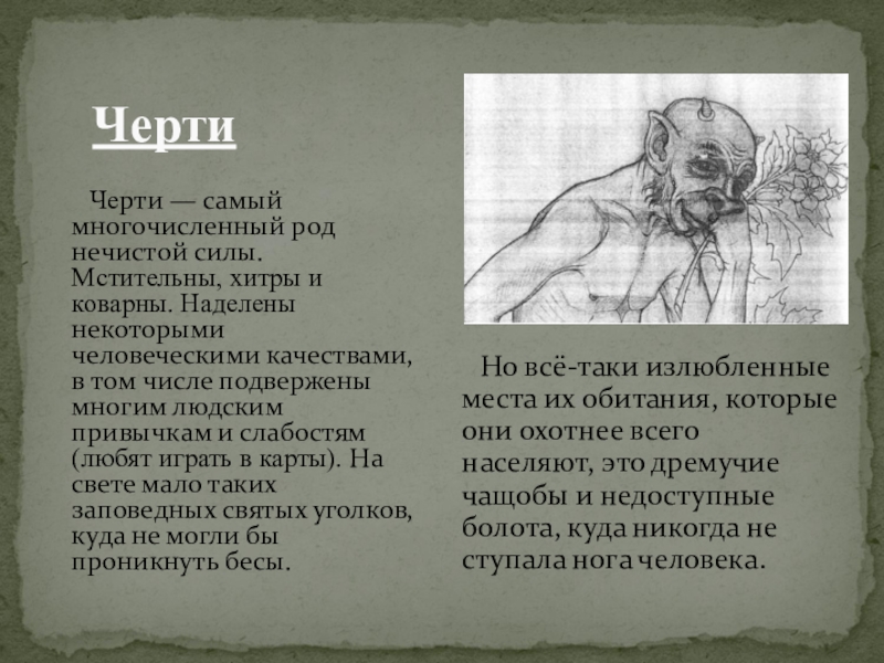 Черти — самый многочисленный род нечистой силы. Мстительны, хитры и