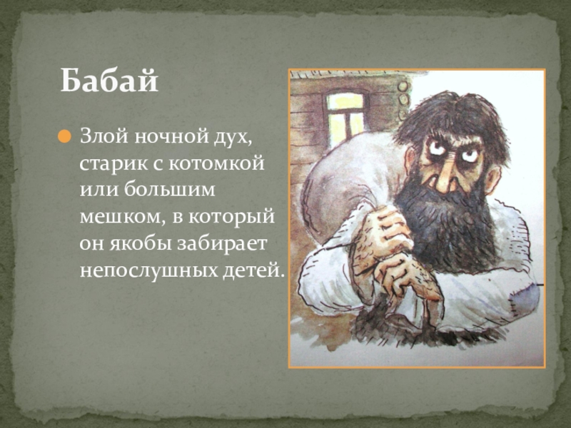 Злой ночной дух, старик с котомкой или большим мешком, в который