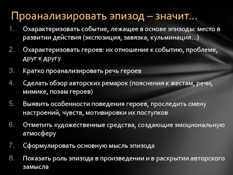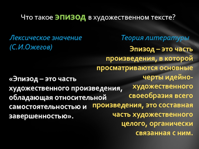 «Эпизод – это часть художественного произведения, обладающая относительной самостоятельностью и завершенностью».