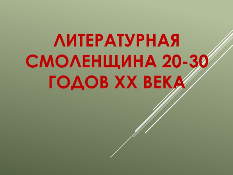 Слайд 1Литературная Смоленщина 20-30 годов XX века