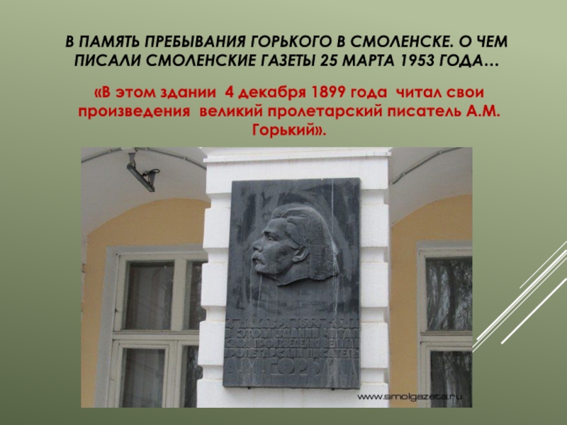 Слайд 6В память пребывания Горького в Смоленске. О чем писали смоленские газеты