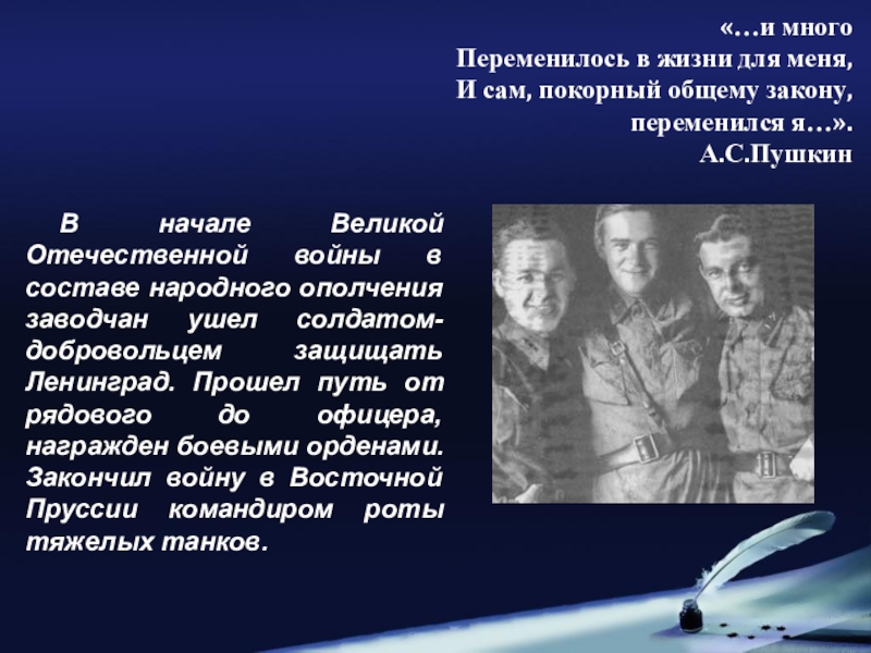 Слайд 4В начале Великой Отечественной войны в составе народного ополчения заводчан ушел