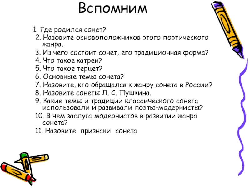 10. В чем заслуга модернистов в развитии жанра сонета?