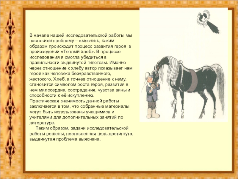 Гипотеза: Если в произведении дается образ хлеба, то через отношение к нему человека автор показывает нравственные качества героя