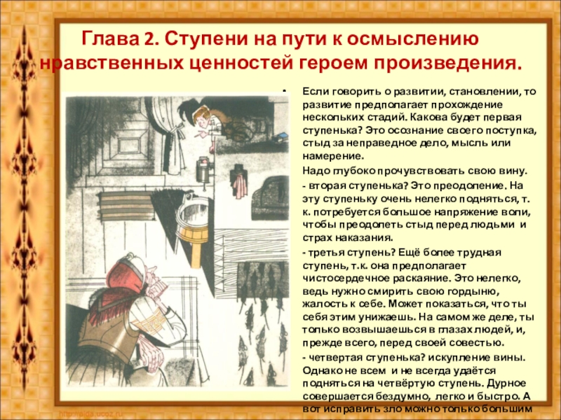 • Найти «ступени» в изображении развития нравственных качеств героя