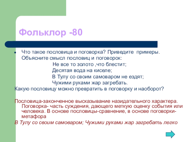 Это сайт презентаций, где можно хранить и обмениваться своими презентациями, докладами, проектами, шаблонами в формате PowerPoint с другими пользователями. Мы помогаем школьникам, студентам, учителям, преподавателям хранить и обмениваться учебными материалами.