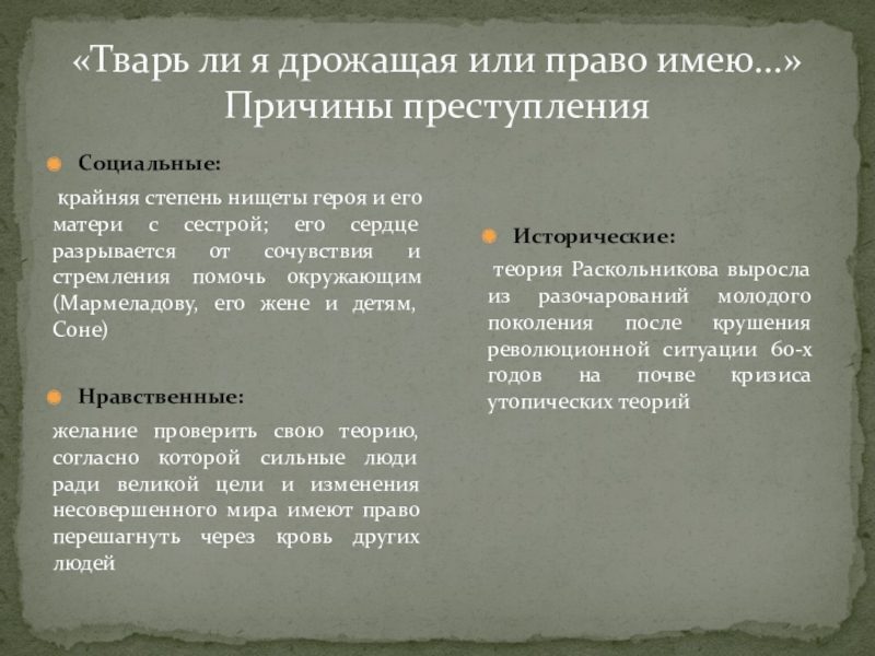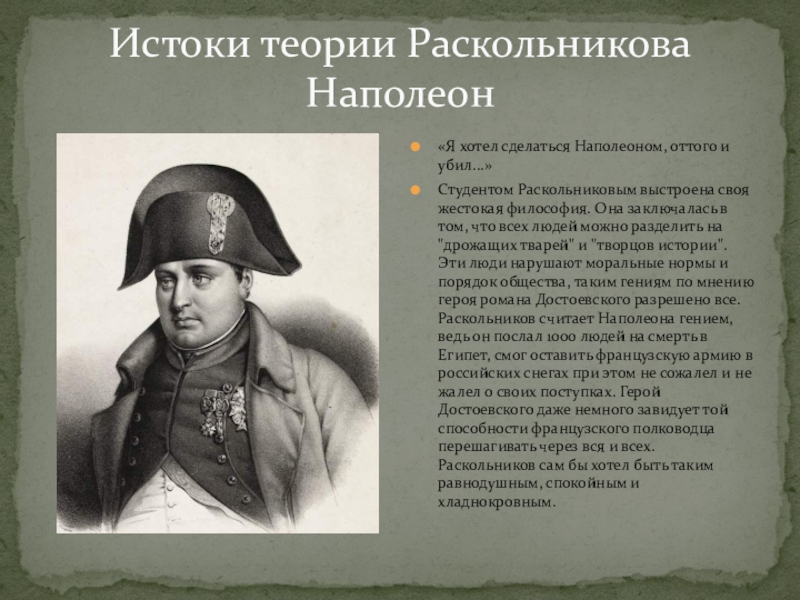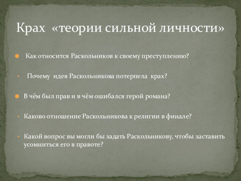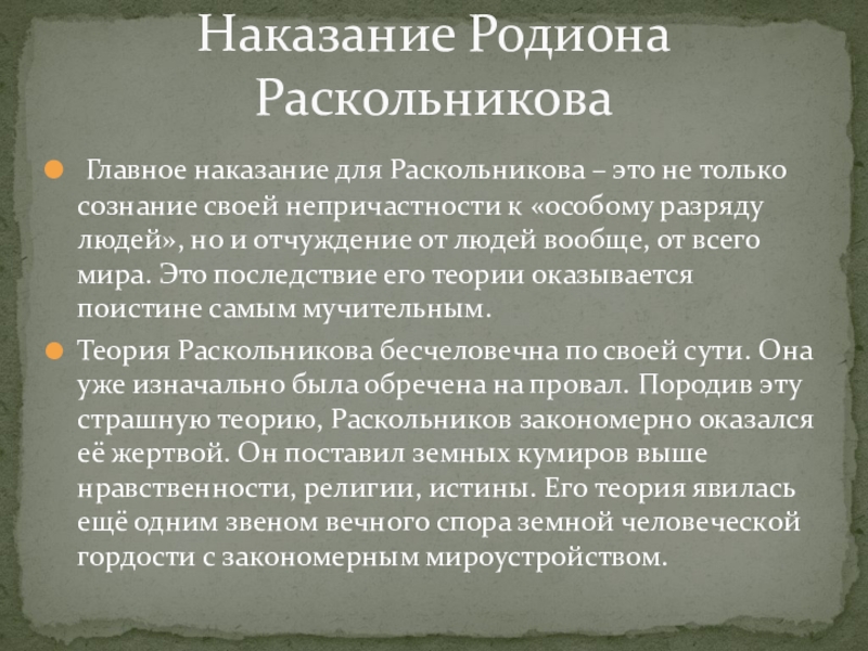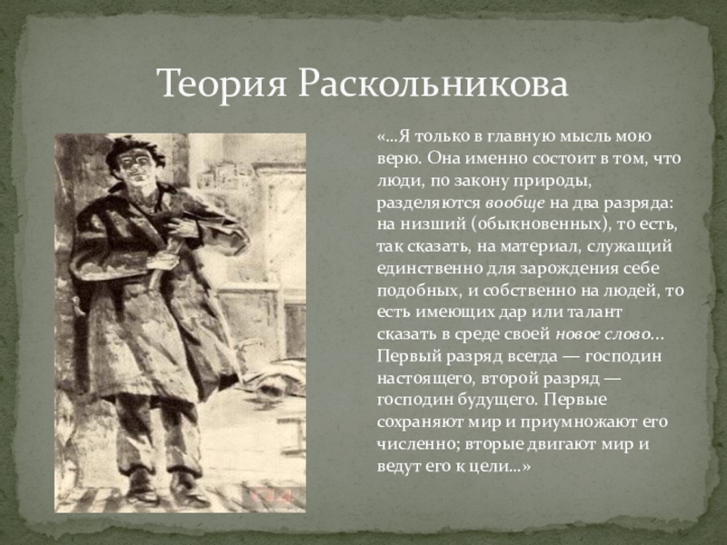 теория Раскольникова выросла из разочарований молодого поколения после крушения революционной ситуации 60-х годов на почве кризиса утопических теорий
