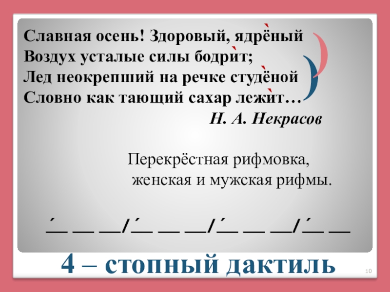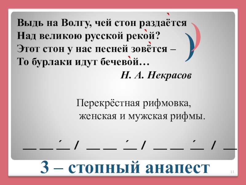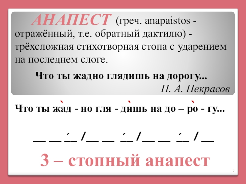 Н. А. Некрасов «Тройка»Чем больше безударных слогов в стихотворной стопе, тем стихотворение должно получаться распевнее, мелодичнее и