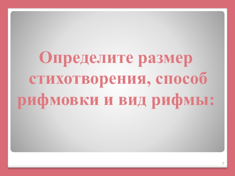 Определите размер стихотворения, способ рифмовки и вид рифмы: