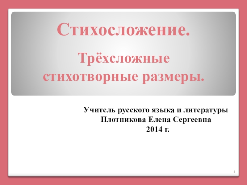 Трёхсложные стихотворные размеры.Стихосложение.  Учитель русского языка и литературы Плотникова Елена Сергеевна  2014 г.