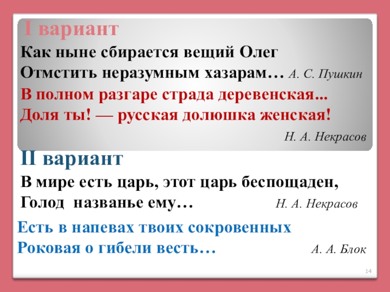 II вариантI вариантКак ныне сбирается вещий ОлегОтмстить неразумным хазарам… А. С. ПушкинВ мире есть царь, этот царь