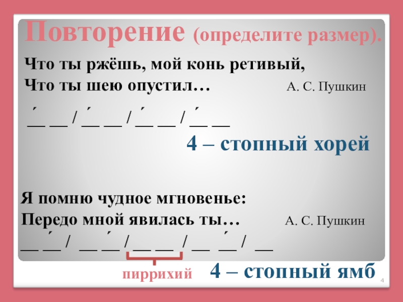 – это порядок чередования ударных и безударных слогов.Трёхсложные:ХОРЕЙ