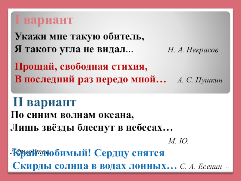 I вариантII вариантУкажи мне такую обитель, Я такого угла не видал…