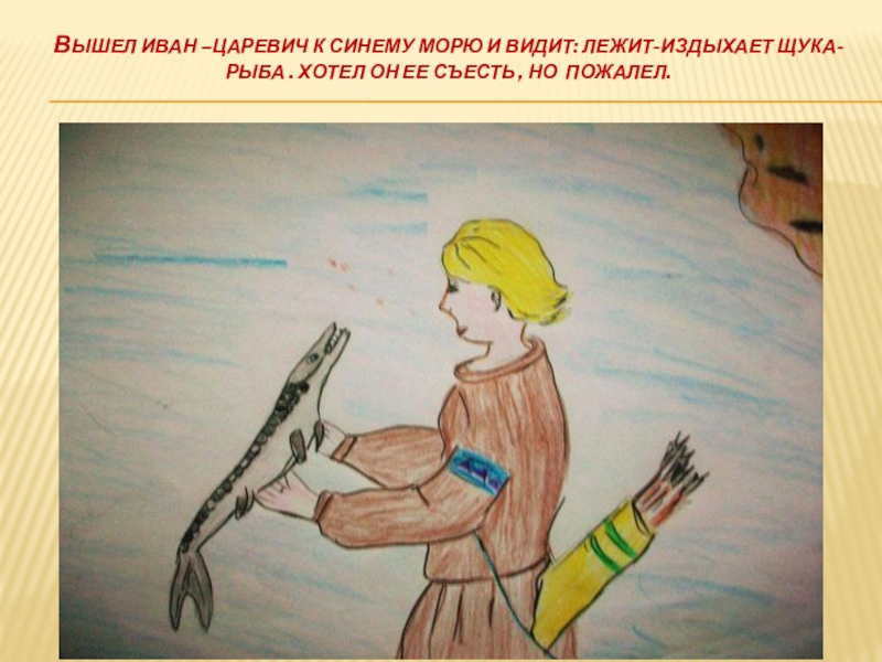 Слайд 17Вышел Иван –царевич к синему морю и видит: лежит-издыхает щука-рыба .