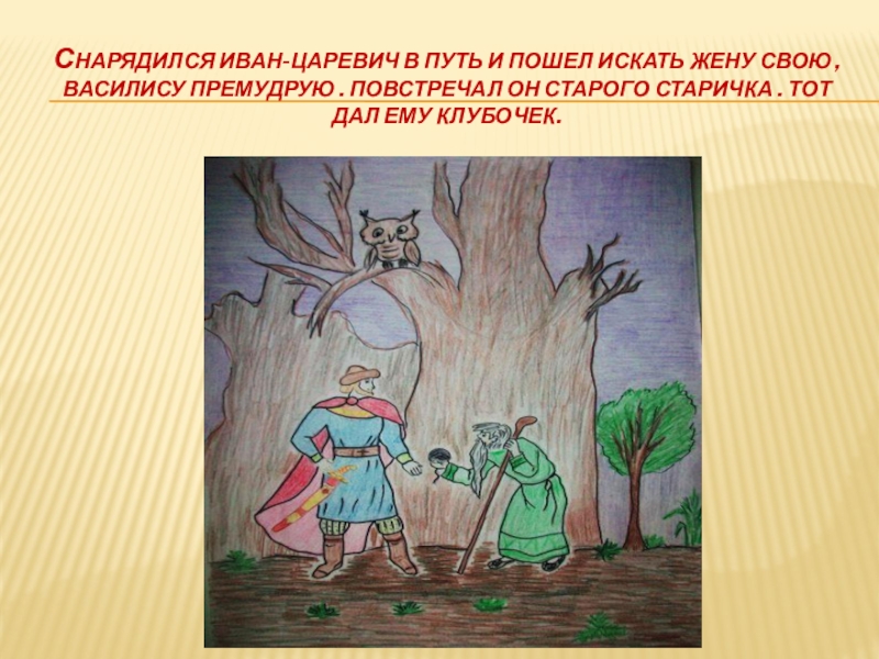 Слайд 13Снарядился Иван-царевич в путь и пошел искать жену свою ,Василису Премудрую