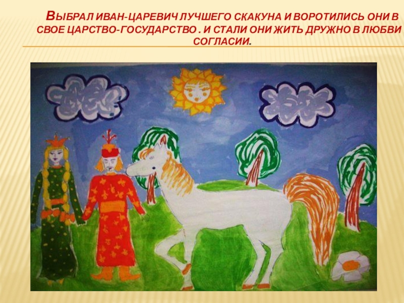 Слайд 21Выбрал Иван-царевич лучшего скакуна и воротились они в свое царство-государство .