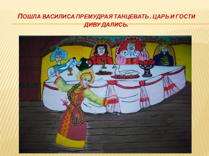 Слайд 11Пошла Василиса Премудрая танцевать . Царь и гости диву дались.