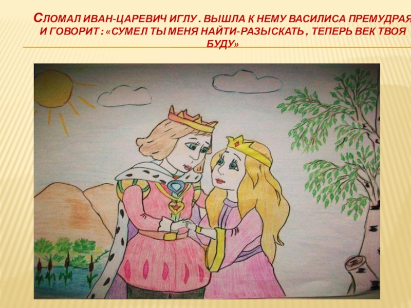 Слайд 20Сломал Иван-царевич иглу . Вышла к нему Василиса Премудрая и говорит