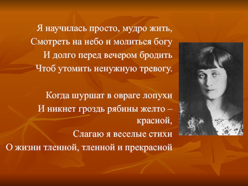 Я научилась просто .мудро жить … А.А. Ахматова