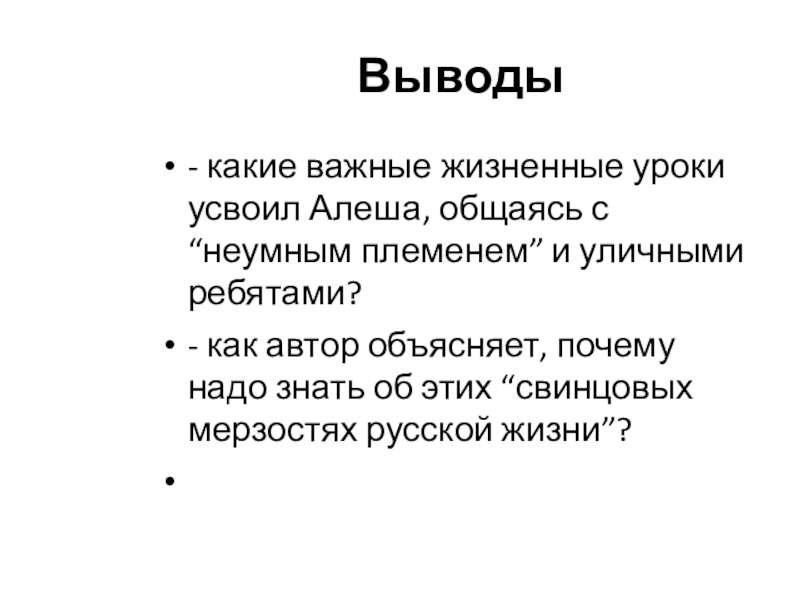 Важные жизненные уроки усвоил Алеша, общаясь с “неумным племенем” и уличными ребятами: