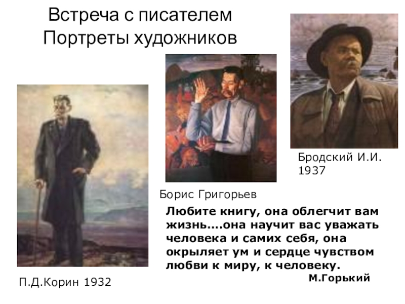 Слайд 3Встреча с писателем Портреты художников