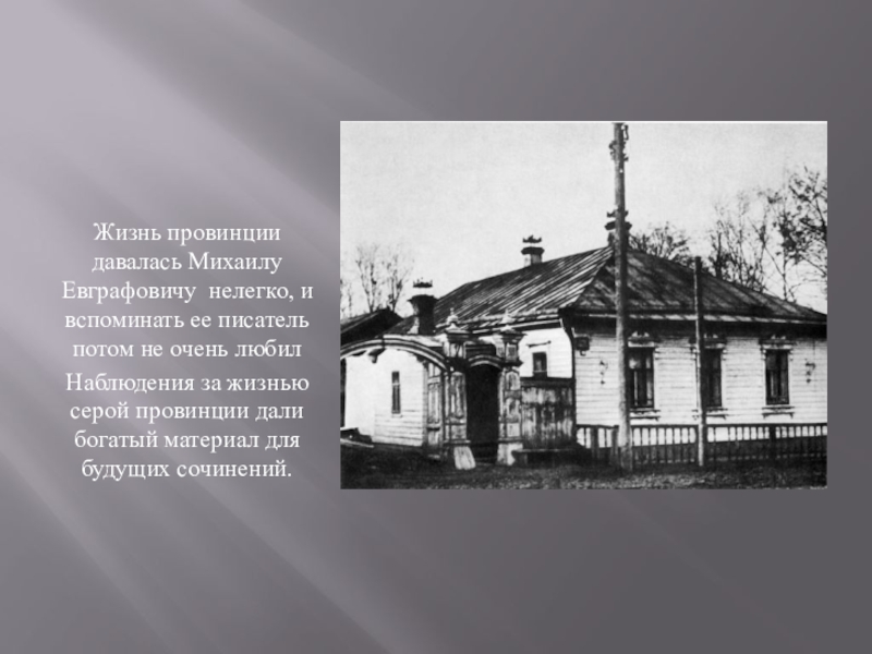 Жизнь провинции давалась Михаилу Евграфовичу нелегко, и вспоминать ее писатель потом