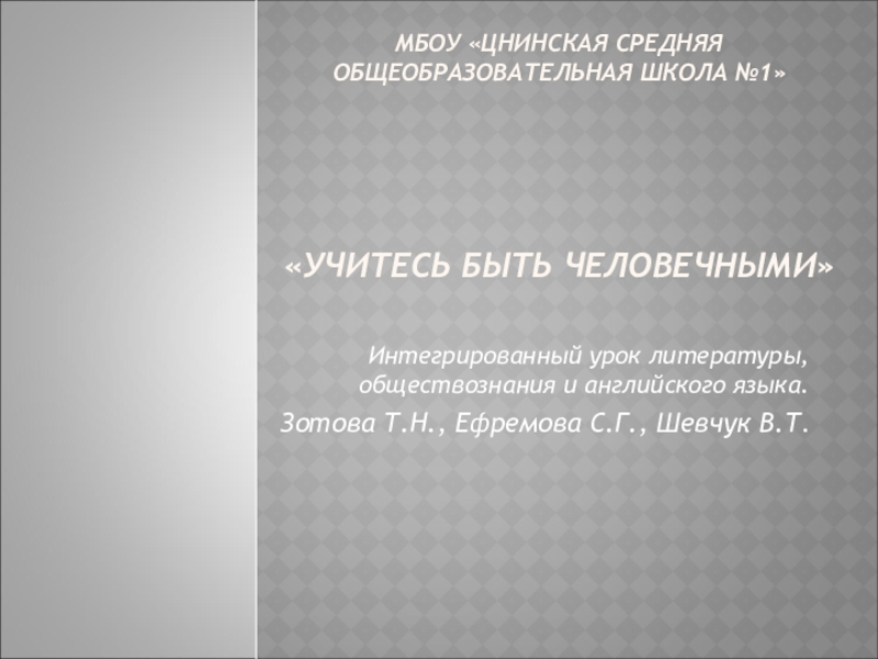 Слайд 1МБОУ «ЦНИНСКАЯ СРЕДНЯЯ ОБЩЕОБРАЗОВАТЕЛЬНАЯ ШКОЛА №1»