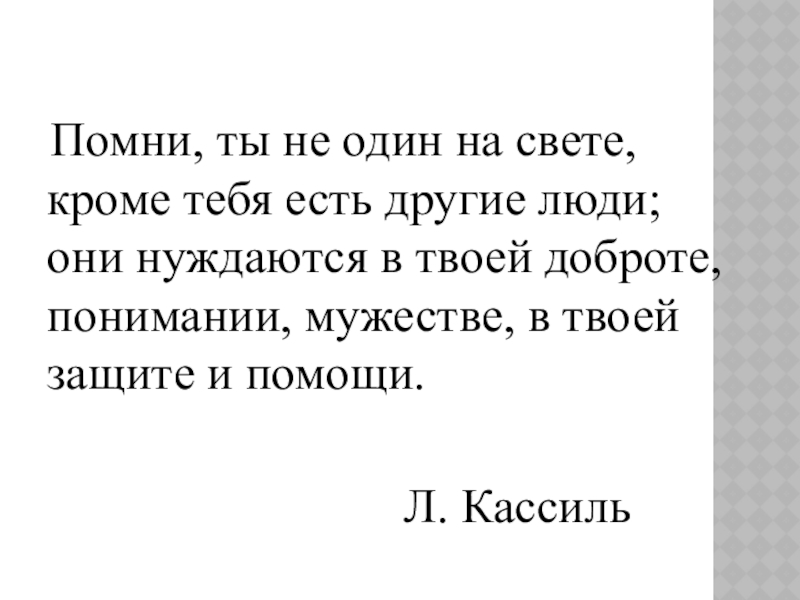 Слайд 23 Помни, ты не один на свете, кроме тебя есть