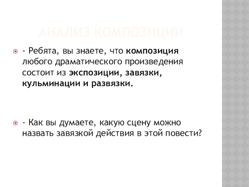 - Ребята, вы знаете, что композиция любого драматического произведения состоит