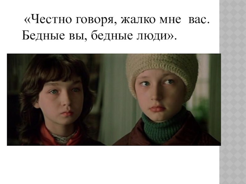 Слайд 19 «Честно говоря, жалко мне вас. Бедные вы, бедные люди».