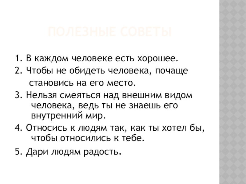 Слайд 25ПОЛЕЗНЫЕ СОВЕТЫ