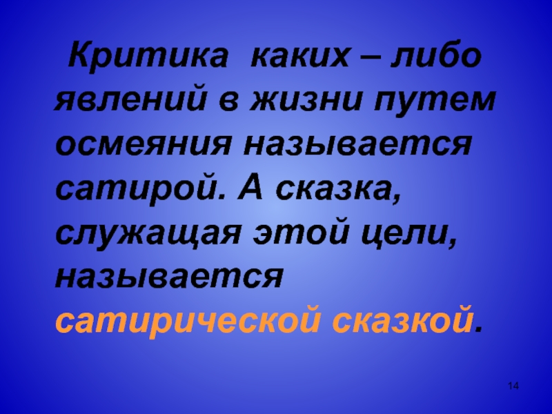 Слайд 14 Критика каких – либо явлений в жизни путем
