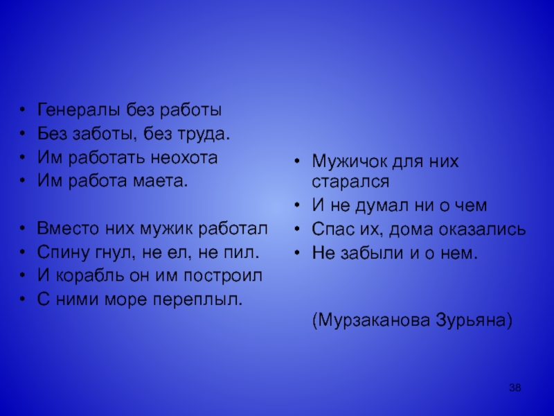 Сколько набрались страху генералы во время пути от бурь да от ветров разных, сколько они ругали мужичину за его тунеядство – этого ни пером описать, ни в сказке сказать.