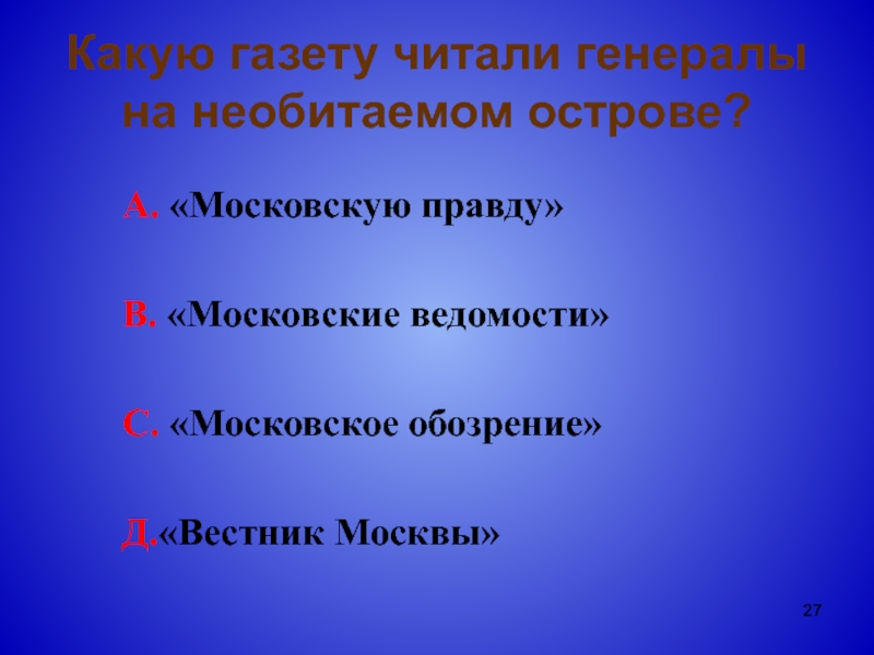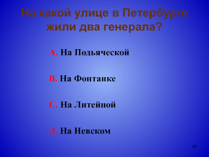 Слайд 24На какой улице в Петербурге жили два генерала?