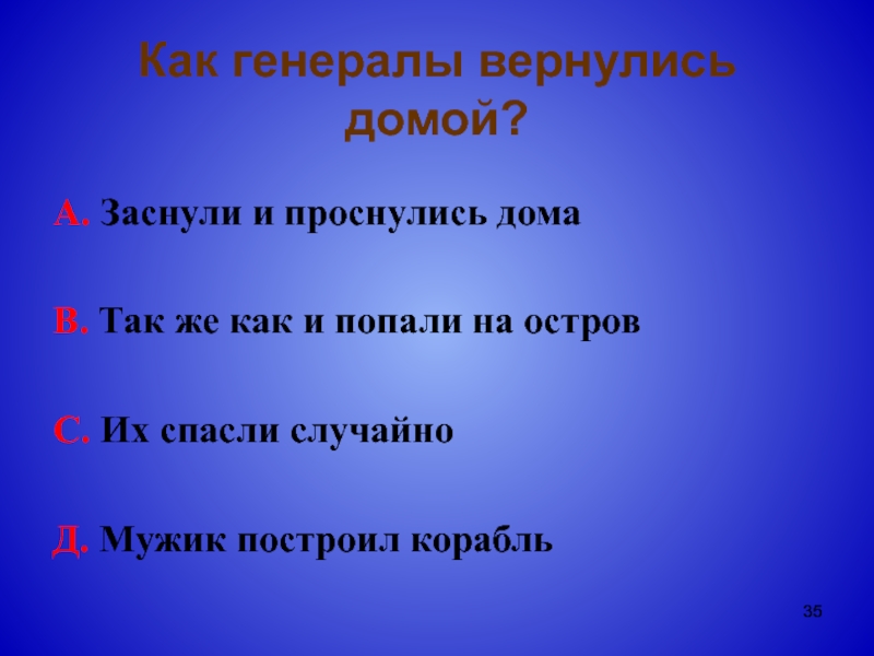 Фантастика – генералы попадают, заснув, на необитаемый остров.