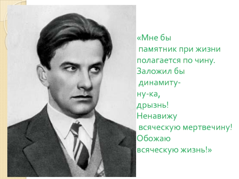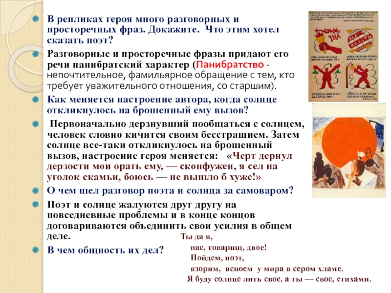Ты да я, нас, товарищ, двое! Пойдем, поэт, взорим, вспоем у мира в сером хламе.