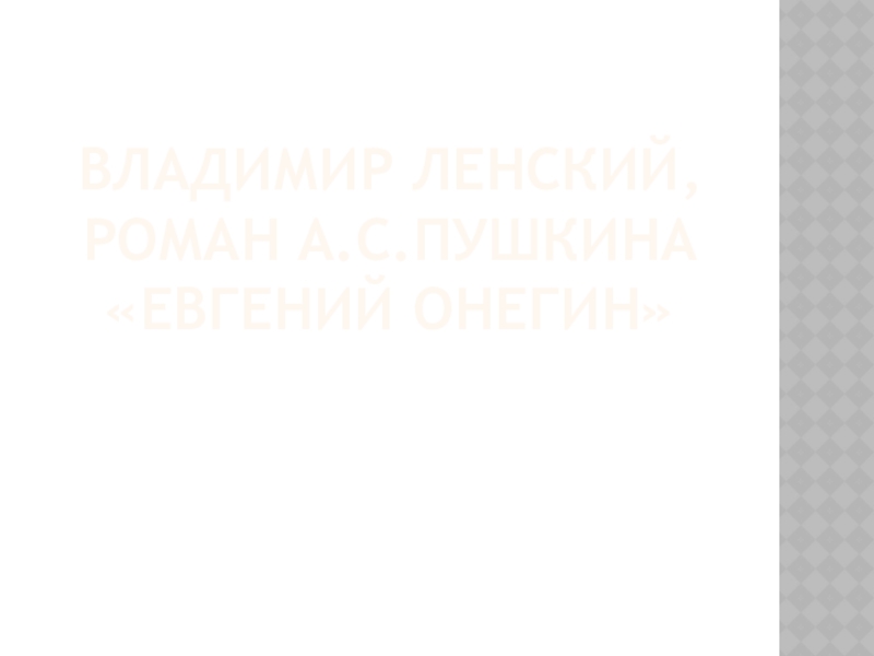 Слайд 7Владимир ленский, Роман А.С.пушкина «Евгений Онегин»