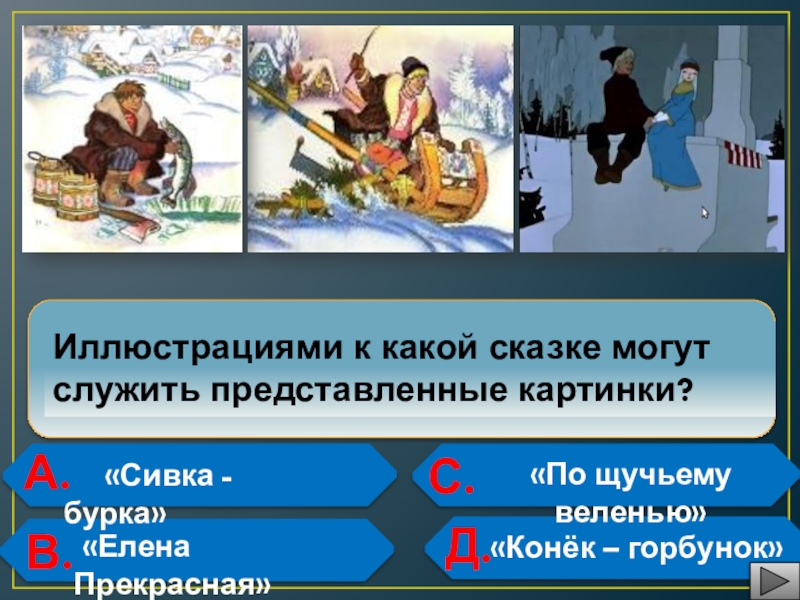 Иллюстрациями к какой сказке могут служить приведенные картинки?