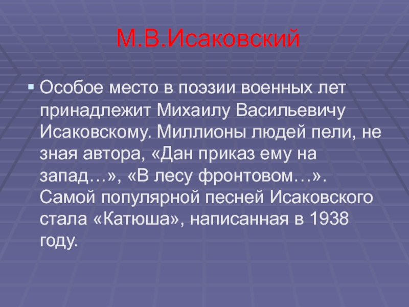 Слайд 6М.В.Исаковский